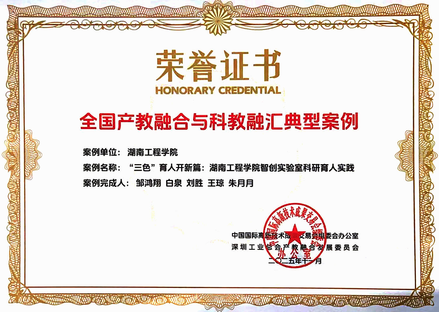 2025年11月,由BETWAY官方网站报送的《“三色”育人开新篇:必威betway官网入口智创实验室科研育人实践》案例,成功入选“第二十七届中国国际高新技术成果交易会(高交会)全国产教融合与科教融汇典型案例”。展现了学院在推进科研育人、深化产教融合方面的创新成果。
